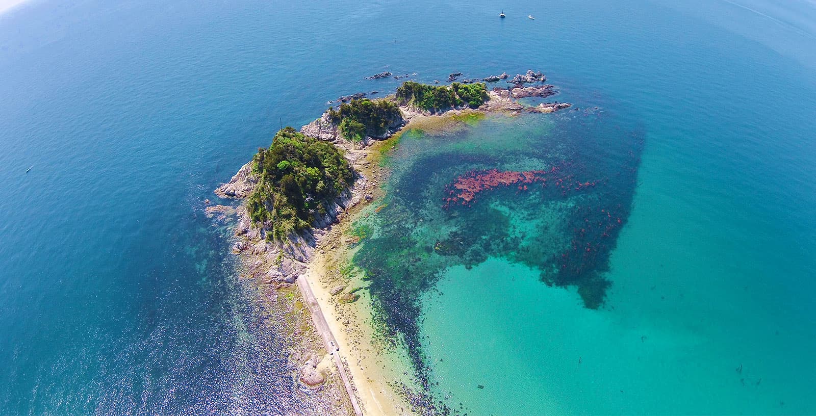 豊富な魚を求めてスナメリも頻繁に顔を出し、リゾート感を演出しています。火山活動が生み出した、表情豊かな岩も見所です。