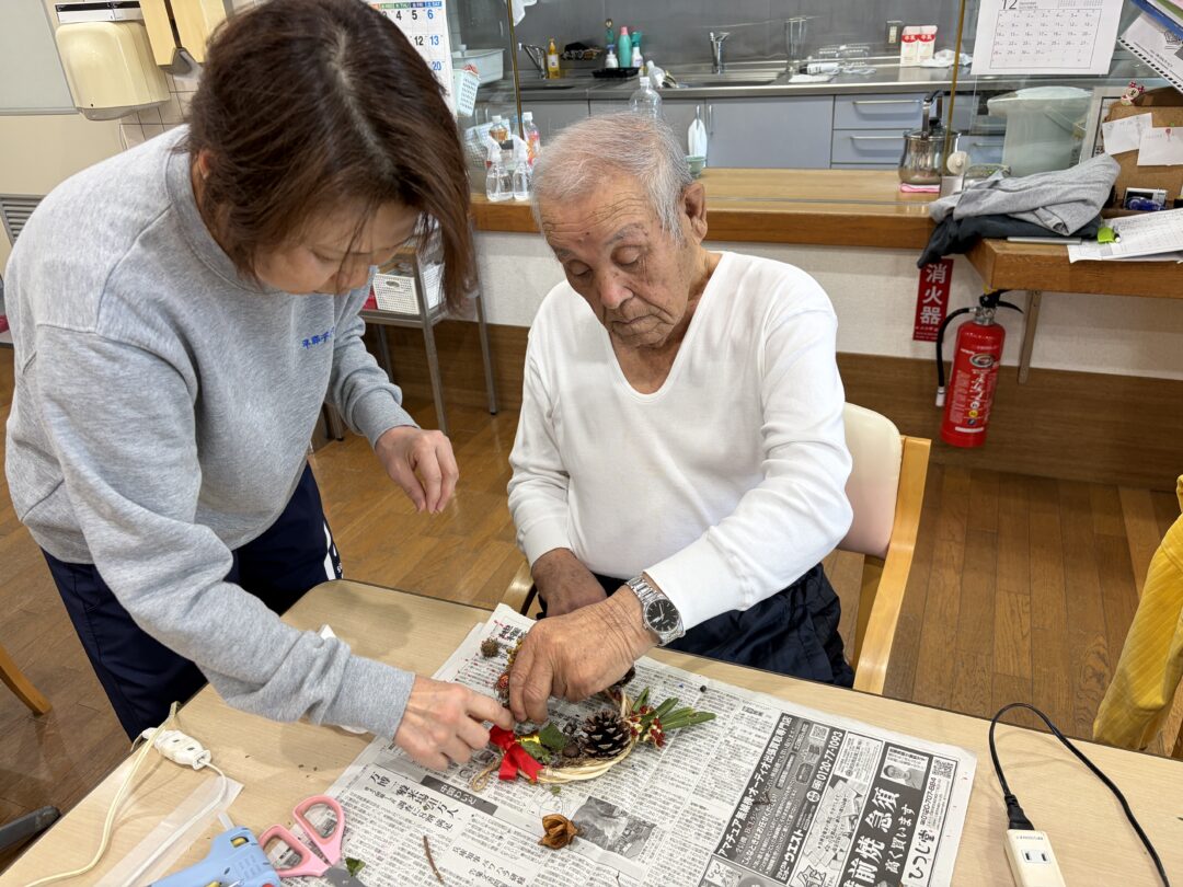 12月に入ったこの日は、クリスマスが近いということでリースを作っておられました。