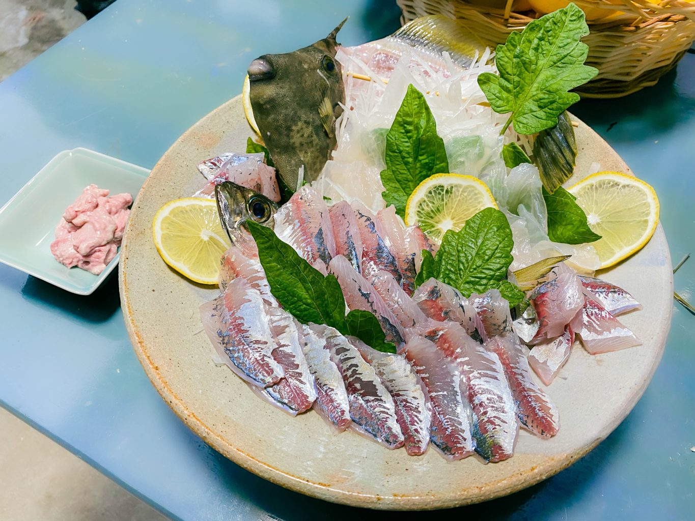 早速ですが、先日平郡島で釣れたアジとカワハギの写真をどうぞ。