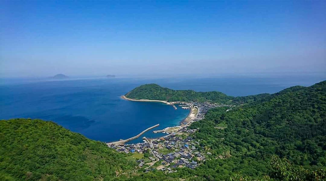 架橋されてない島としては山口県最大面積を誇る有人離島で、標高468mの深山を最高地点として、島の中央部を深い山が背骨のように走り、平坦地が少ない地形です。