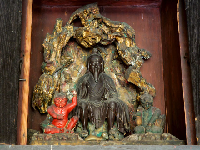 ほどなく一人を島に残し、一人は九州方面へ、一人は山陰地方に旅立っていった。その際に再会の時の証拠の品として仏像を一体ずつ所持した。島に残った一人が所持したのが役行者像であったと伝えられている。